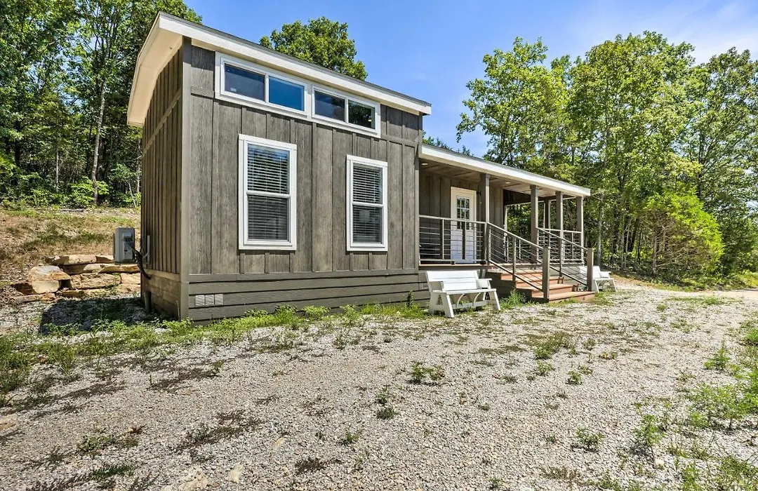 Branson Tiny Home On 52 Acres With Private Pond! comes with a bathroom with a separate toilet and a shower. Hair dryers and towels are also available.